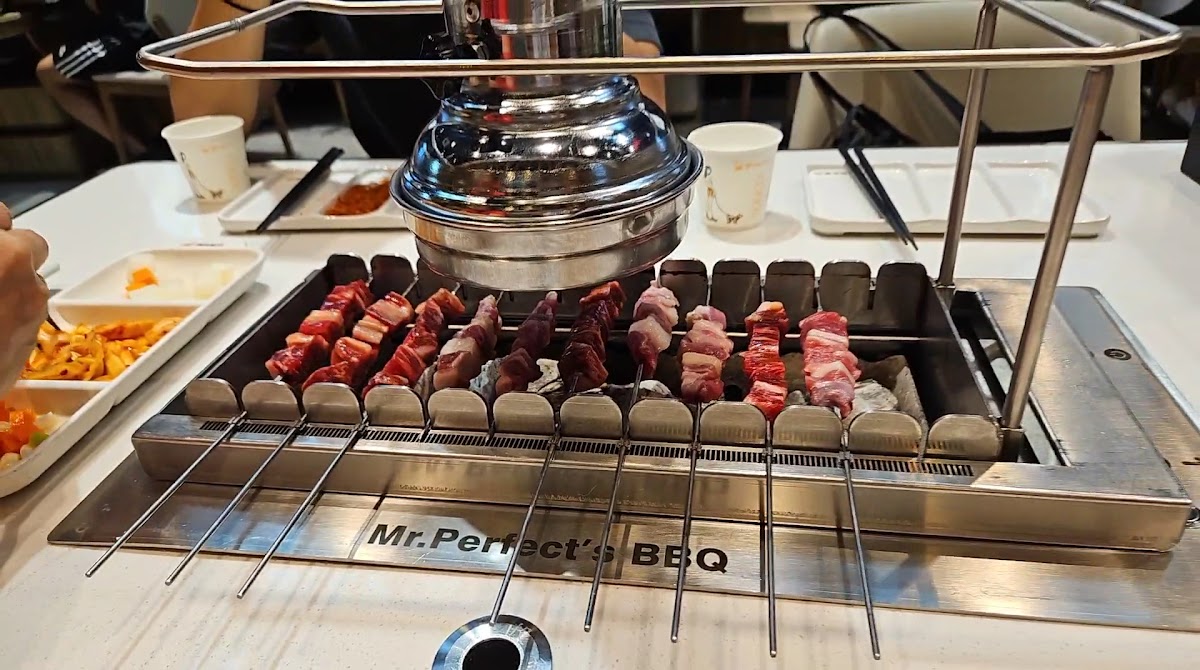Mr Perfect offers delicious food that truly lives up to its name. One standout feature is their clever invention where the skewers rotate themselves—both fun and functional. Although the wait was long, the incredible flavors made it totally worth it